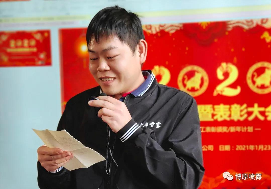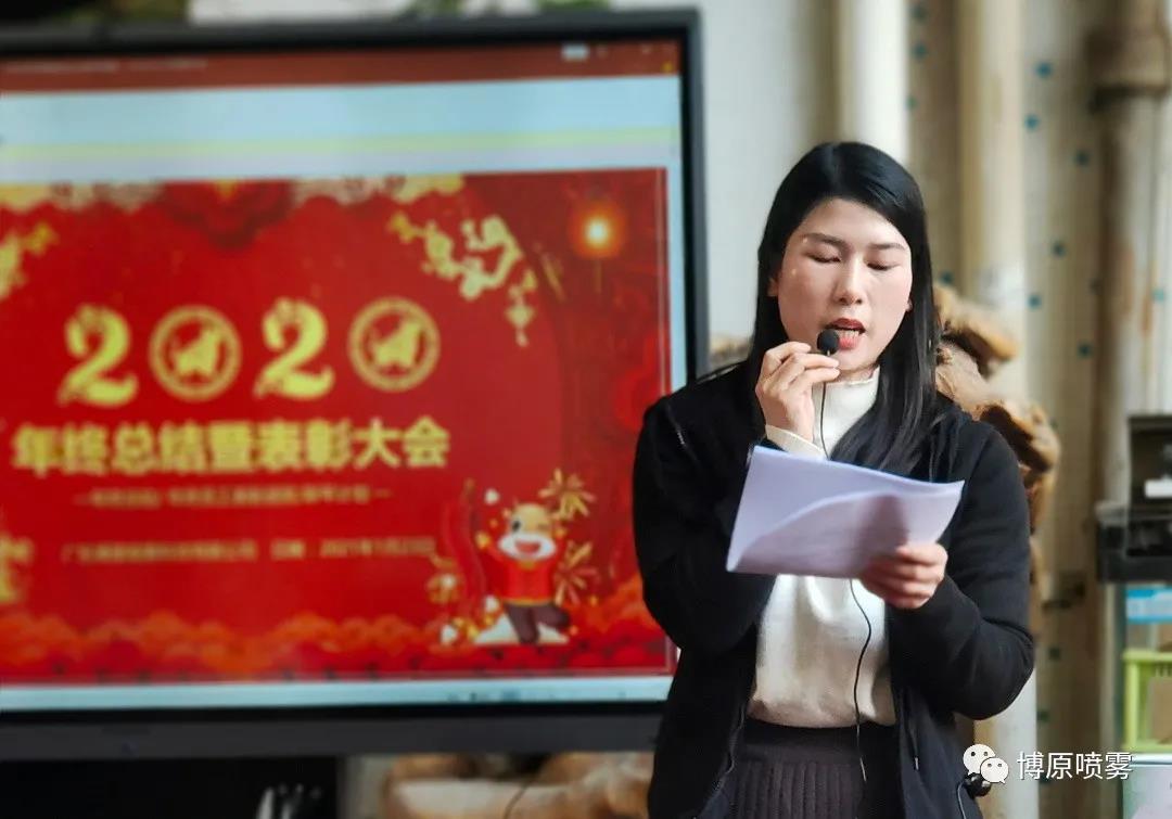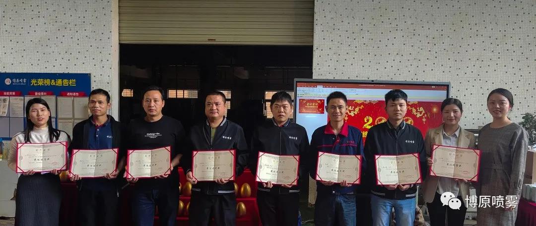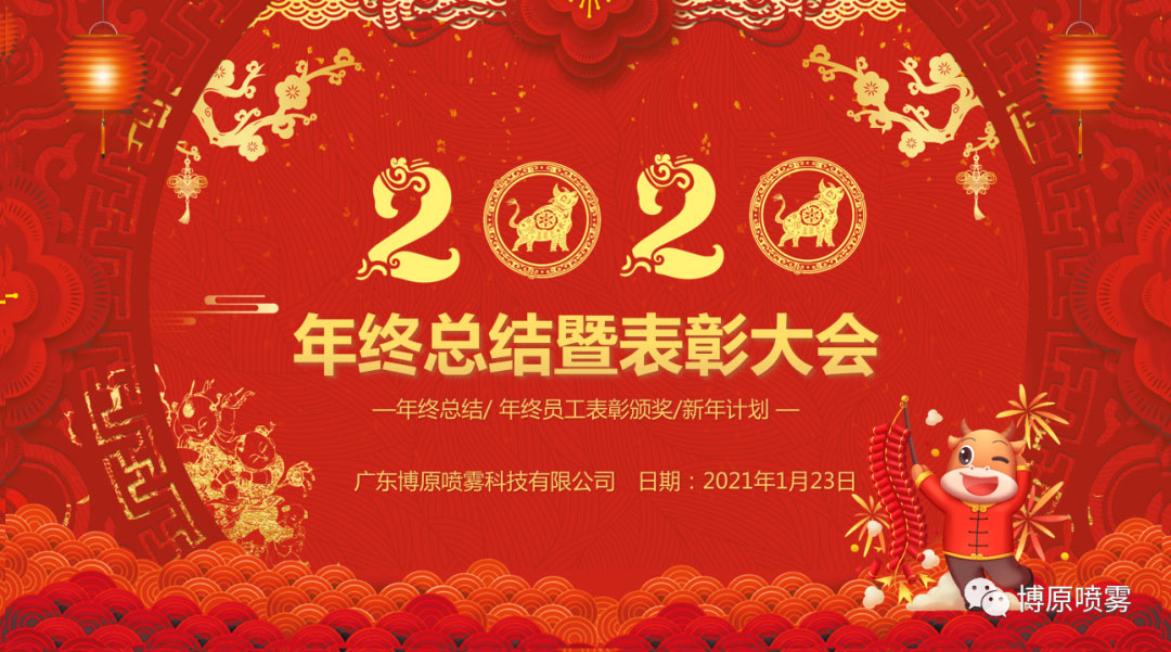 2021年1月23日,廣東博原噴霧科技有限公司召開《2020年終總結(jié)暨表彰大會(huì)》,為響應(yīng)國(guó)家政府號(hào)召,疫情期間,此次大會(huì)在工廠內(nèi)部舉行。
