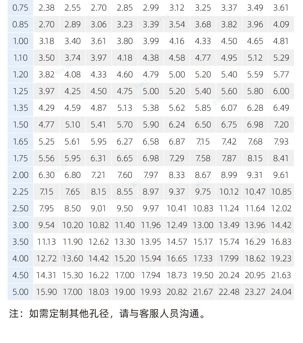 孔徑規(guī)格
